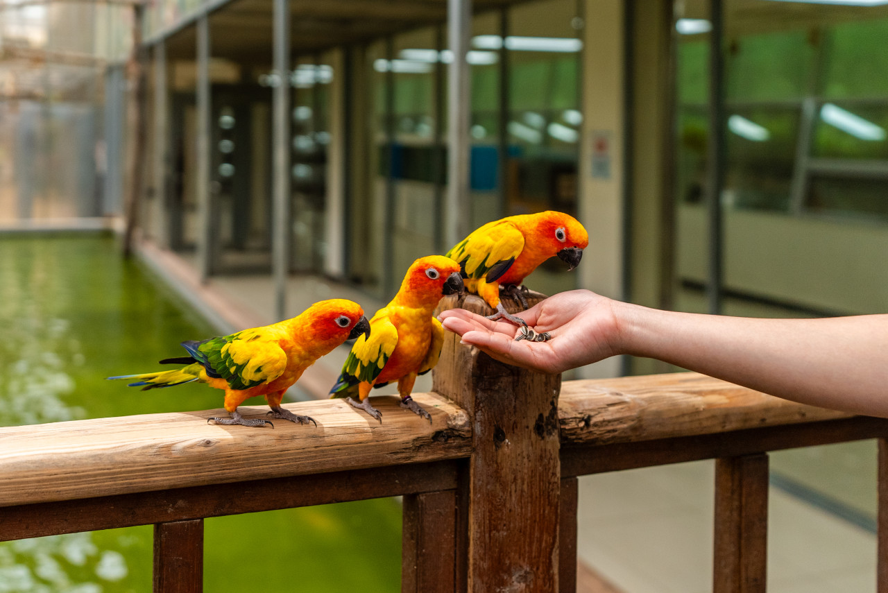 📸 앵무새 먹이 주기 체험존 (아이들이 가장 좋아하는 공간!)