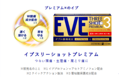 | 이브 쓰리샷 프리미엄 | 150mg | 30mg | 80mg | 100mg |