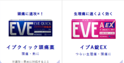 | 이지엔6 이브 | 이브 A EX | 연질캡슐 형태로 빠른 진통 효과 |