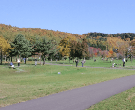 일본에서의 파크골프라는 것은 골프채 하나와 골프공 하나 그리고 티만 있으면 누구라도 즐길 수 있는 간단한 스포츠로 알려져 있습니다. 채로 공을 쳐서 컵인할 때까지의 타수를 겨루면서 즐길 수 있는 건강한 스포츠입니다.